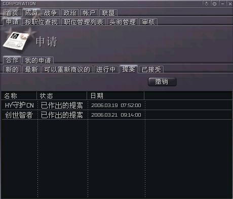 3。军团"成员"信息:这里的信息非常的多,基本上对所有人员的管理和任命都是在这个页面里进行。细分为:申请-----在这里审核/提案新成员的加入和开除,职位查询----按职位查询成员信息,职位管理列表----进行各职位官员的任免,头衔管理----对每个职位下属的8个部门进行更详细的分配,审核----统计一段时间以内各成员的表现。(军团的成员的管理非常的复杂,和一个真正的公司管理系统差不多,我这里只是做了最简单的描述,具体的安排要*领导层详细的摸索)