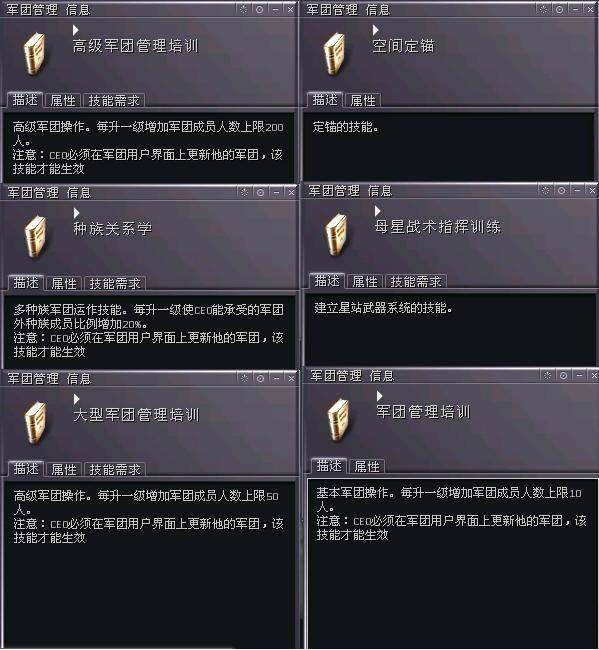军团管理者定位的相关技能:作为一个军团的CEO,你必须拥有领导的气质和才华,你必须要有足够的上线时间,和善于交流沟通。即使你的其他技能发展很慢,但是你的领导学技能和军团管理技能一定要够高。请记住你是一个管理者,是一个军团的最高领导者,你必须以身作则的做一个好领导,精明的领导,这样你才能很好的带领几十人甚至几百人的大军团征战宇宙的战场。