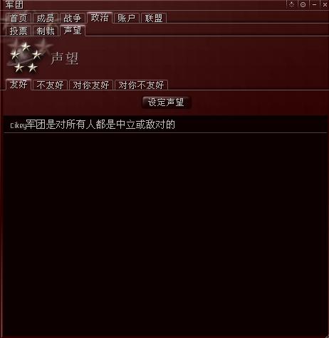 点击“声望”标签,如图61所示,在这里可以查看你的声望和设定声望。声望并没有多大意义,只是一个标示而已。