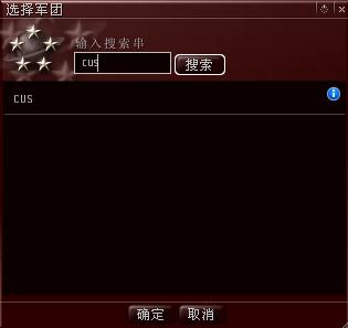 输入名称之后,点击“搜索”按钮,我们以给cus军团设置声望为例,输入cus,点击“搜索”按钮,如图63所示,
