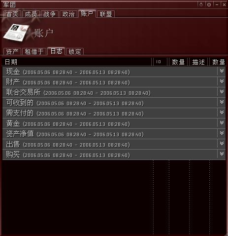 点击军团管理窗口下面的“帐户”标签,如图65所示,
