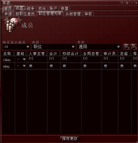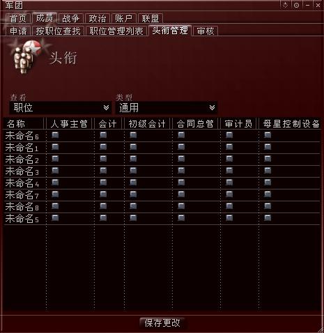 主要是给军团的成员分配一定的职位,每个职位都有一定的权限,要分配职位,只要在小方框里面打勾即可,之后点击“保存更改”按钮,如图51所示,